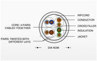 U/UTP Cat 6 Cable, 4-Pairs, 23AWG, CMR, Blue, 305Meter/Box